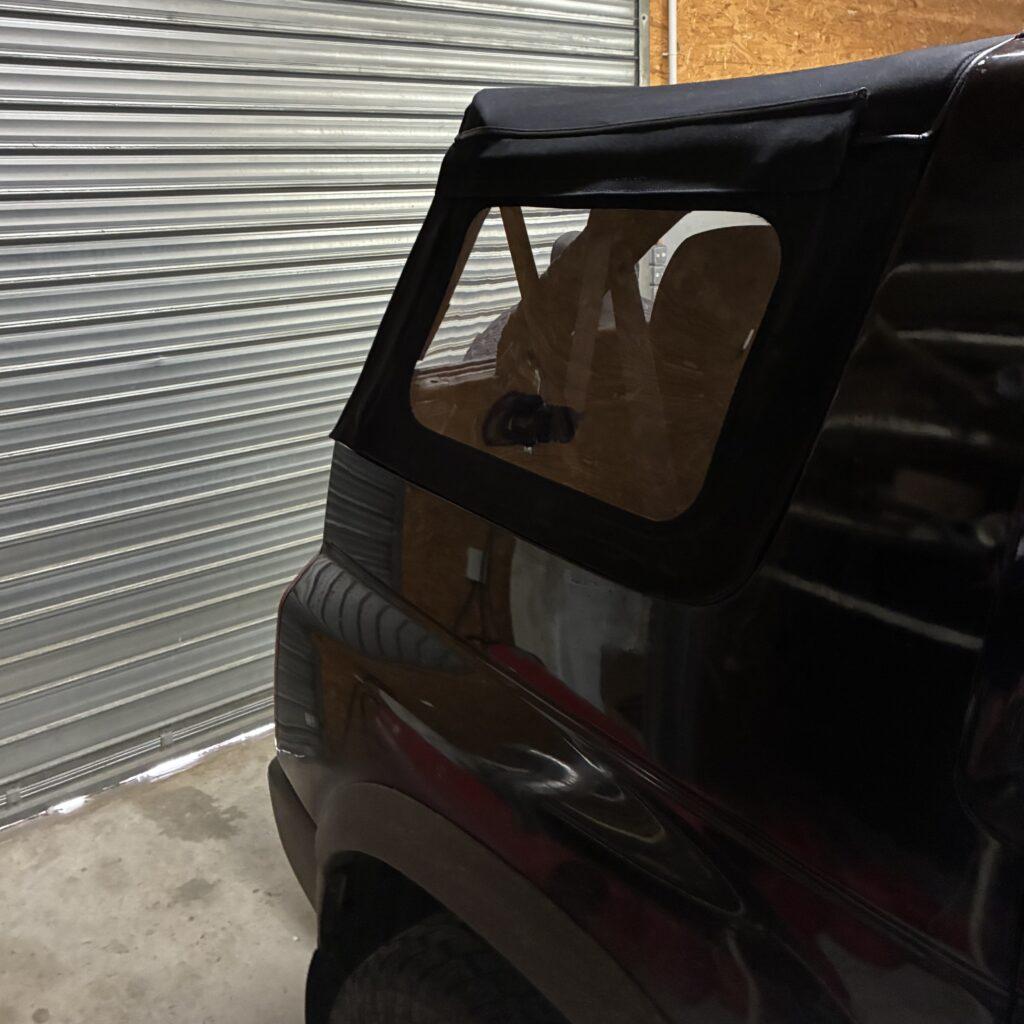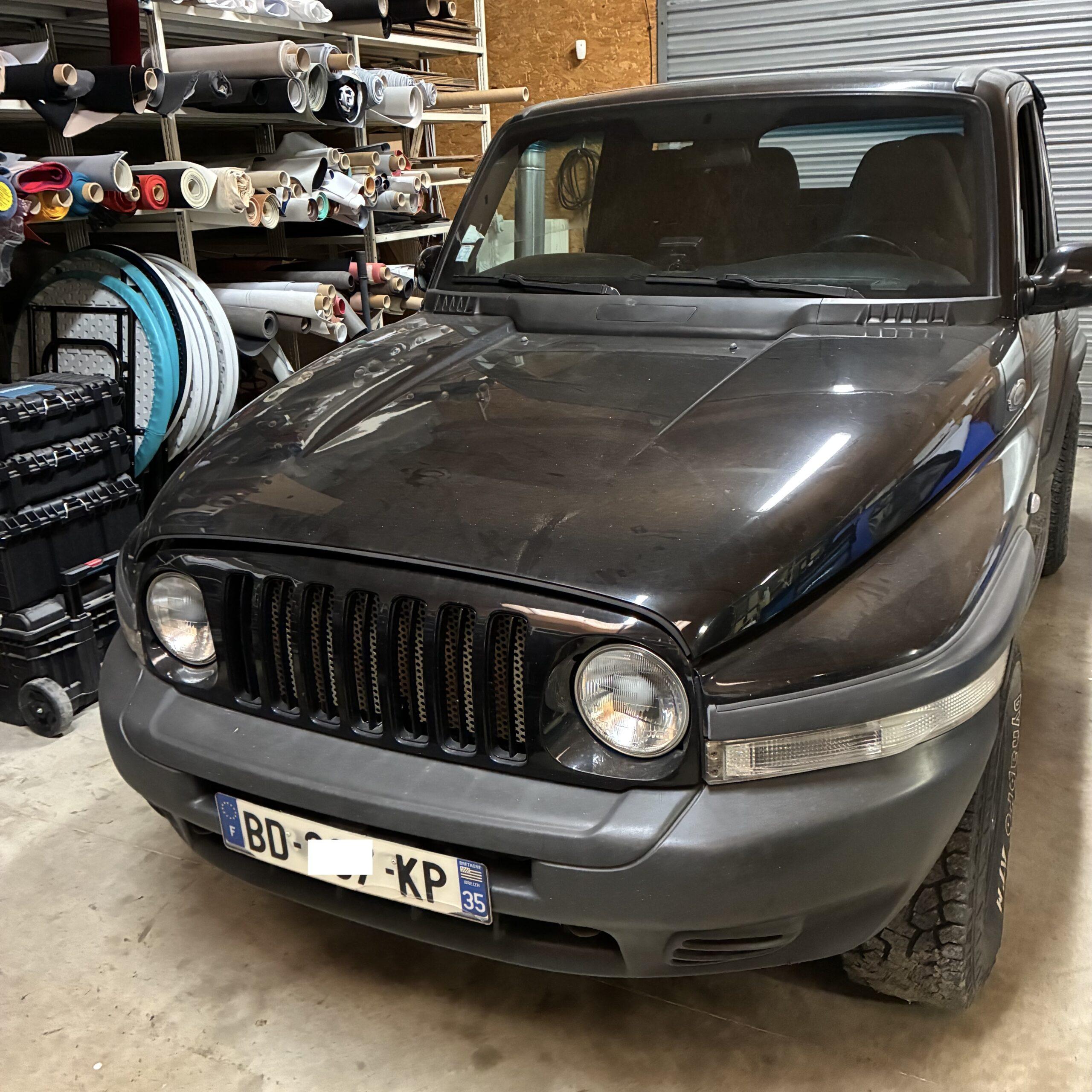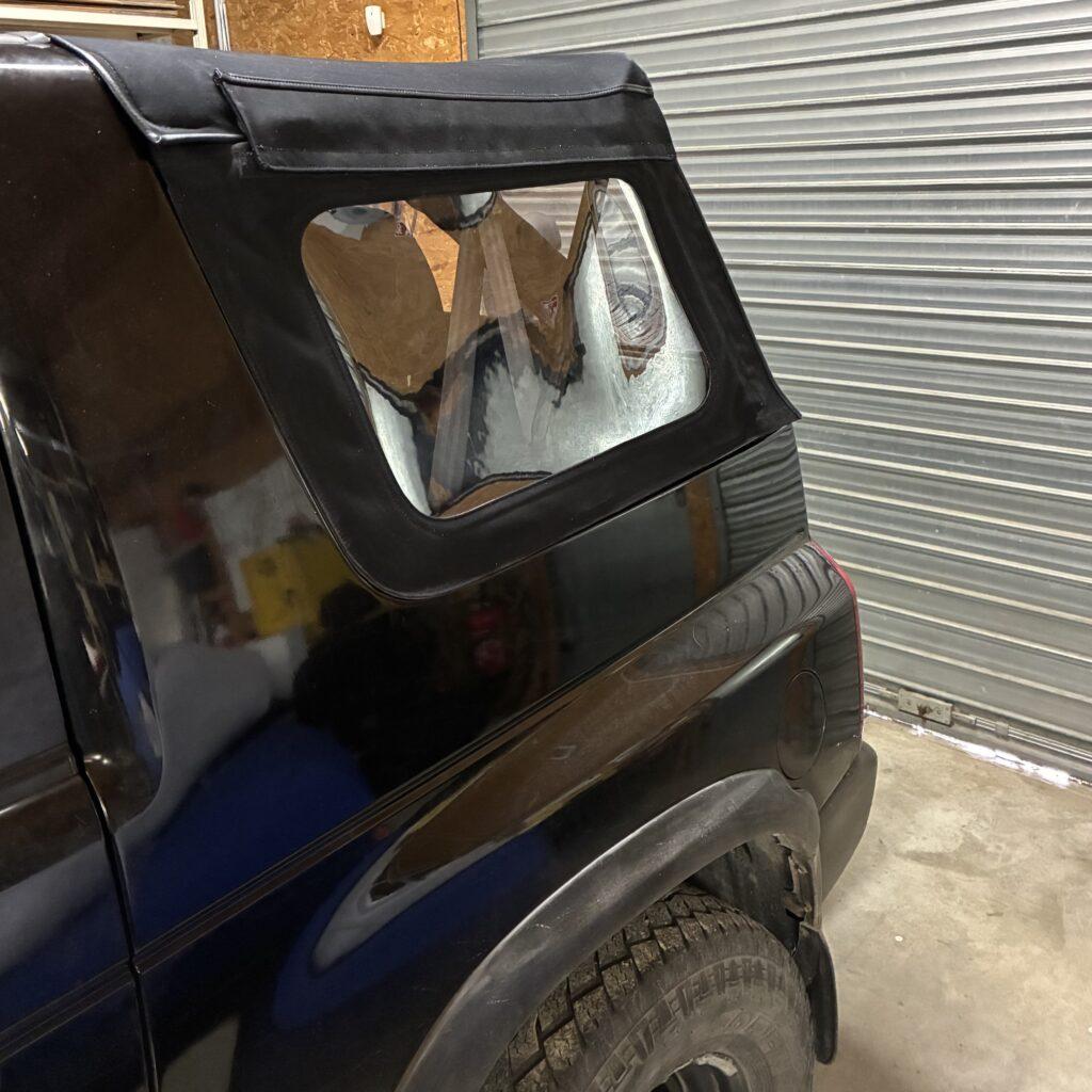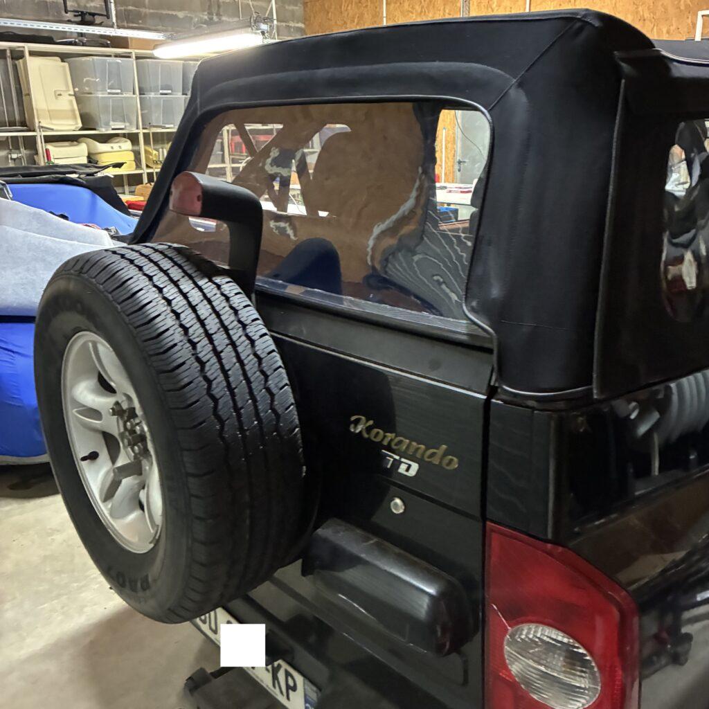 Réalisation d’une capote sur-mesure sur Ssangyong Korando cabriolet dans notre atelier de Tours (région Centre Val de Loire | Indre et Loire | Département 37)