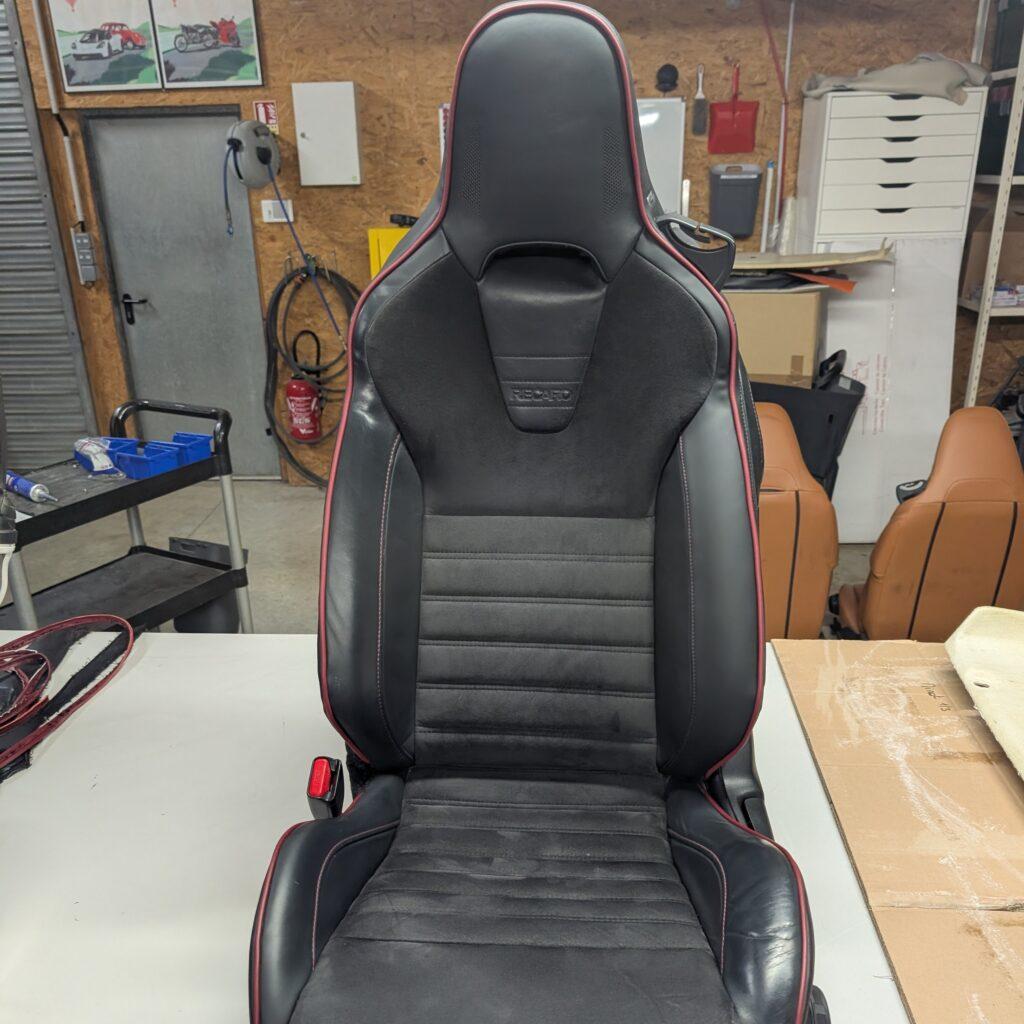 Réparation de la mousse et de la coiffe du dossier du siège conducteur RECARO d’une MAZDA MX5 ND.